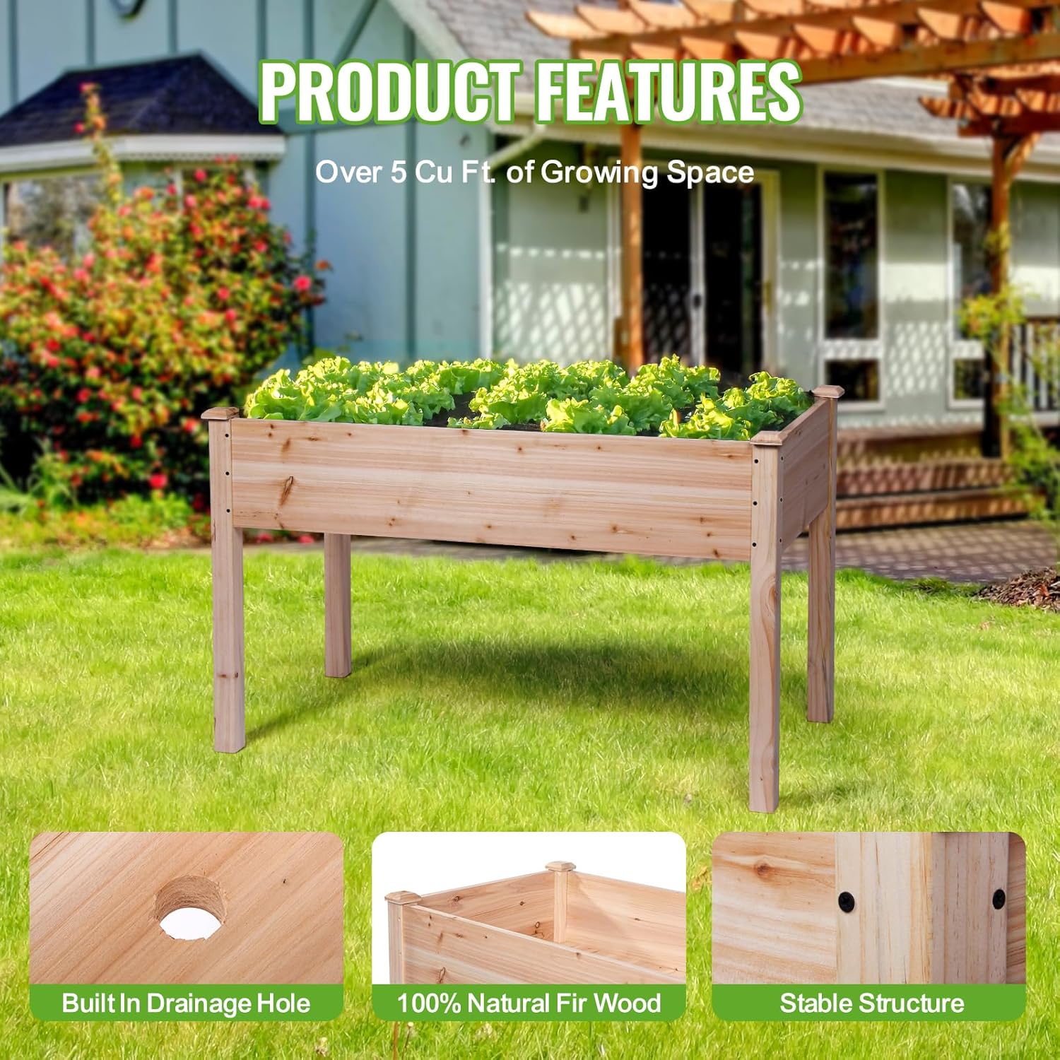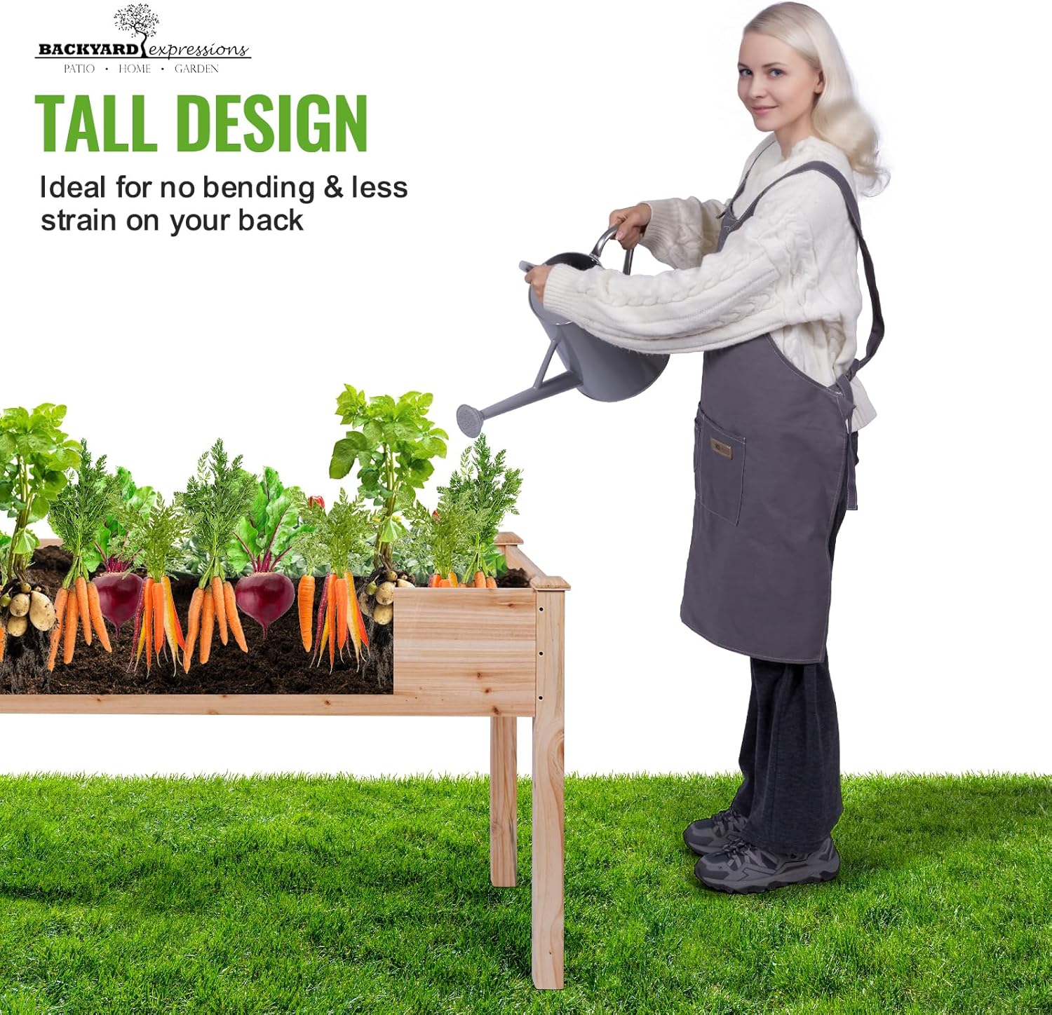 Backyard Expressions Wooden Raised Garden Bed | 48" x 24" x 30" Elevated Planter Box with Included Bed Liner | Outdoor Vegetable, Flower, and Herb Gardening