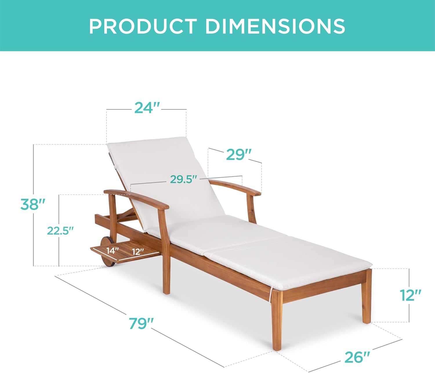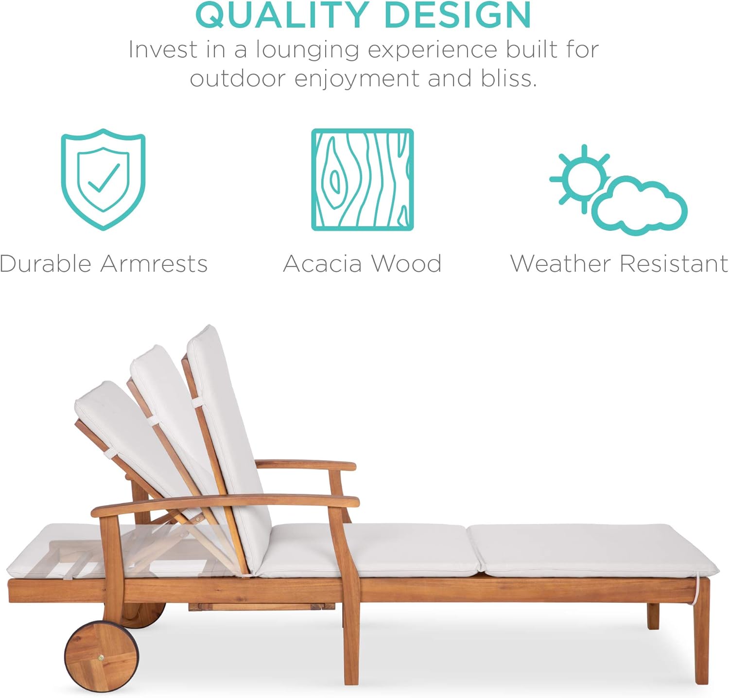 Best Choice Products 79x26in Acacia Wood Chaise Lounge Chair Recliner, Outdoor Furniture for Patio, Poolside w/Slide-Out Side Table, Foam-Padded Cushion, Adjustable Backrest, Wheels - Cream