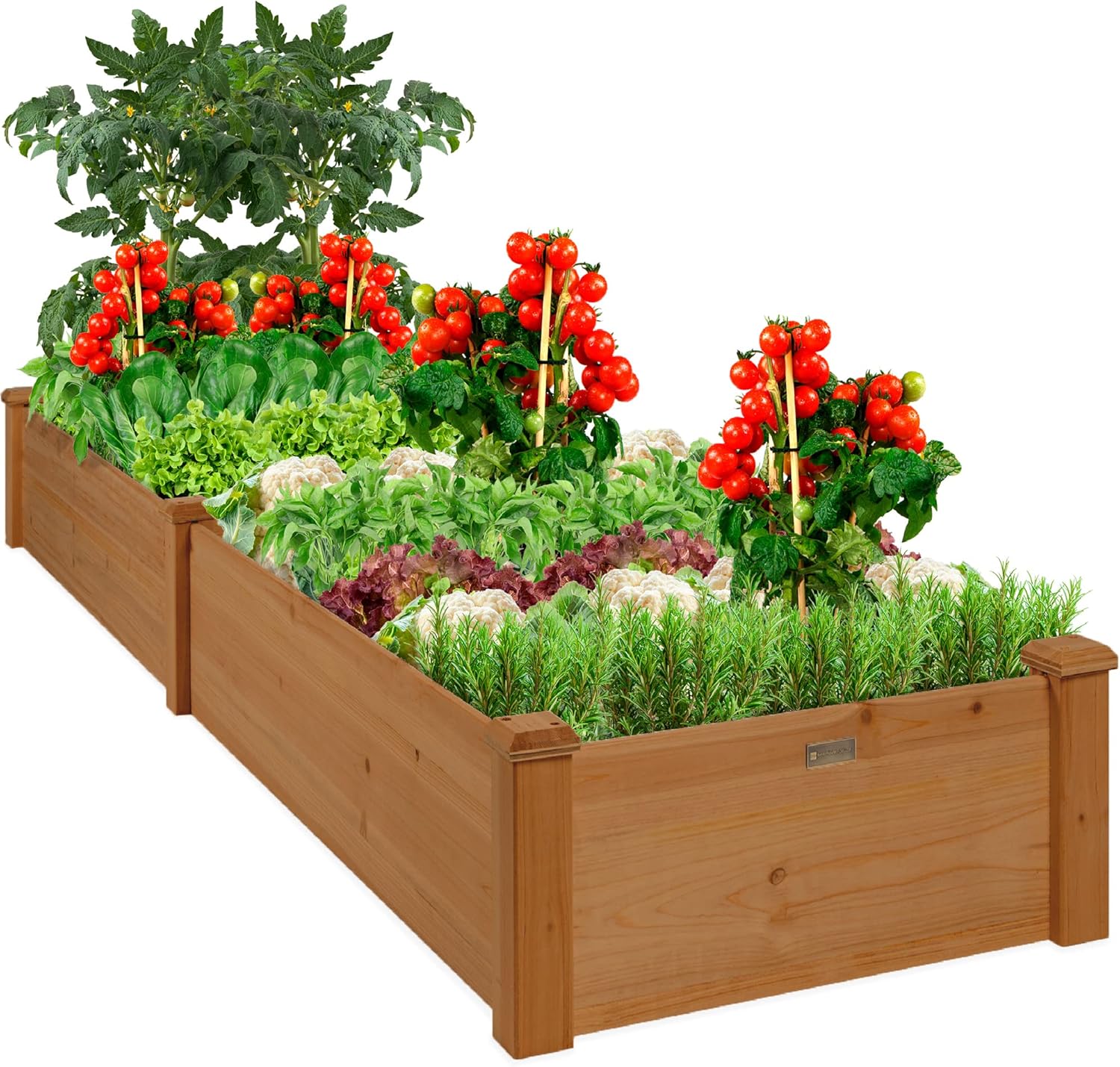 Best Choice Products 8x2ft Outdoor Wooden Raised Garden Bed Planter for Vegetables, Grass, Lawn, Yard - Natural