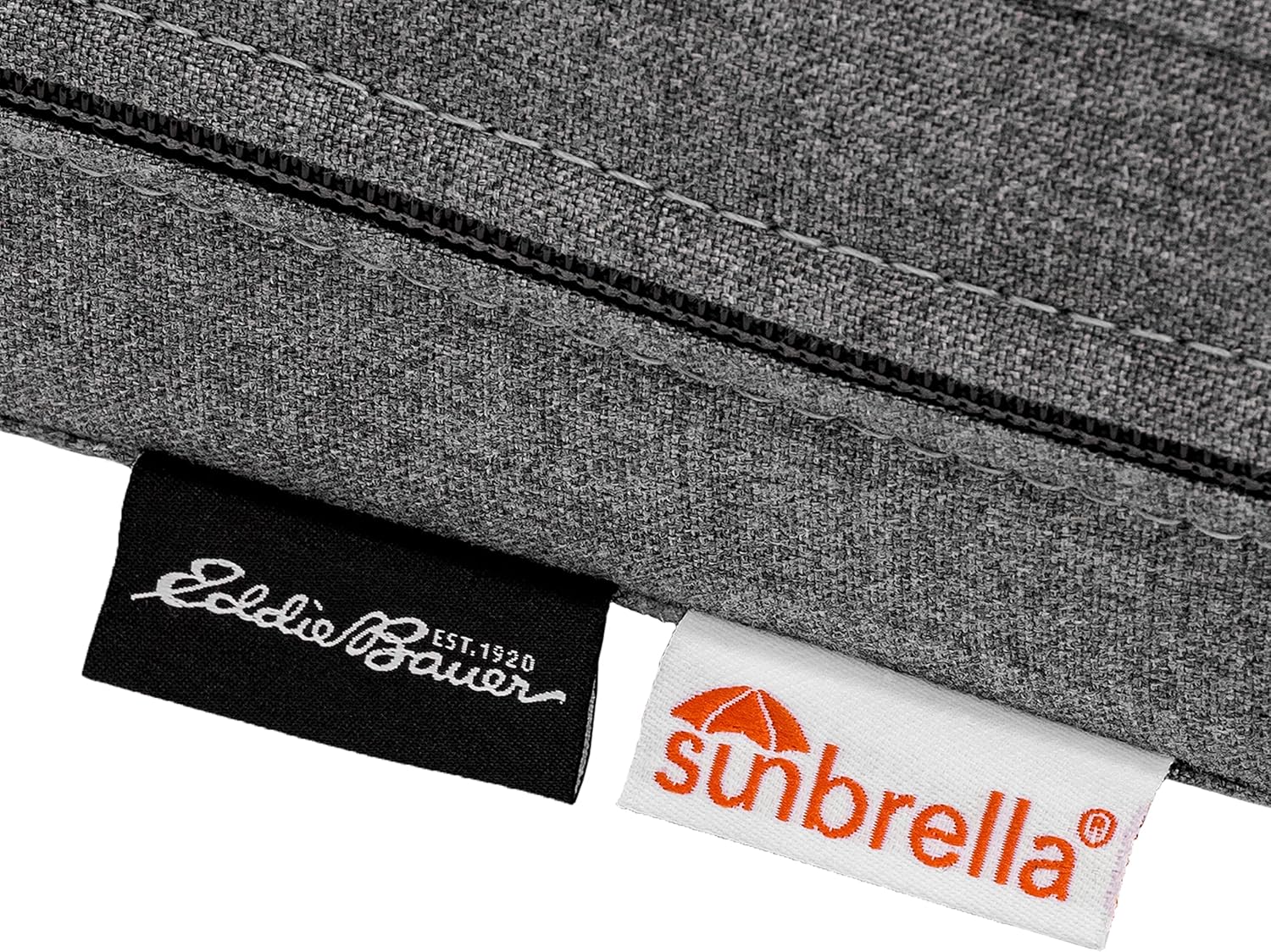 Eddie Bauer Home name has been a symbol of quality and innovative design for the outdoor lifestyle. The fabric casings are sewn with an increased stitches per inch and surged interior edges, resulting in stronger seams. The fill material is completely sealed in a water-repellent covering with a UV additive for a superior outdoor performance. A core of polyurethane foam provides superior comfort and durability. A polyester fiber layer encases the foam core to provide even more softness.