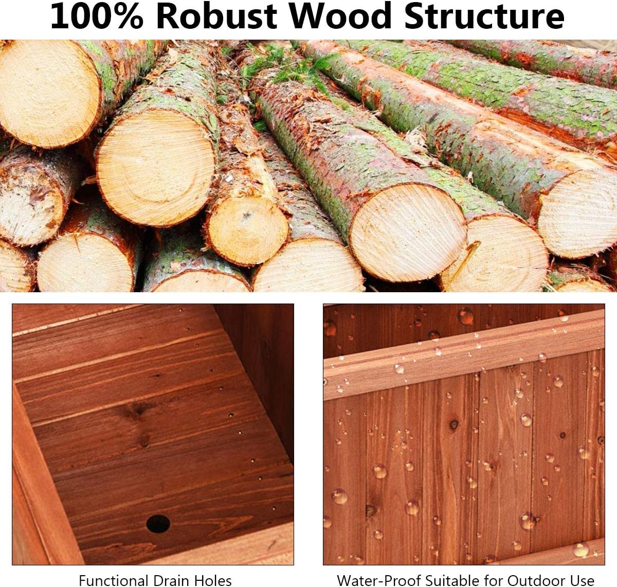 LDAILY Raised Garden Bed, Outdoor Rectangle Flower Beds with Detachable Bottom Panels & 2 Drainage Holes, Wood Planter Box for Flowers/Vegetables/Fruits in Backyard Patio (28" L x 9’’ W x 10’’ H)