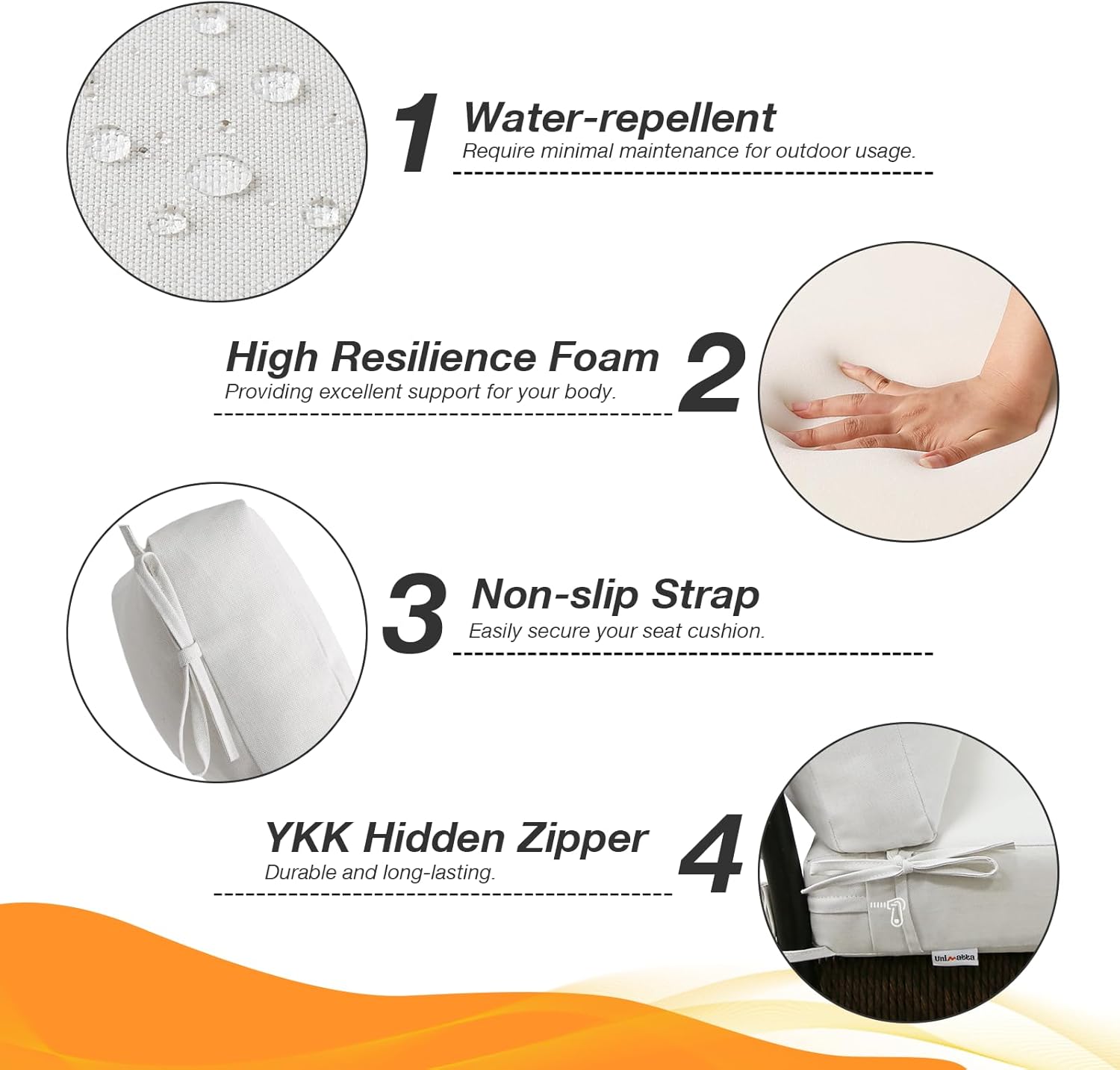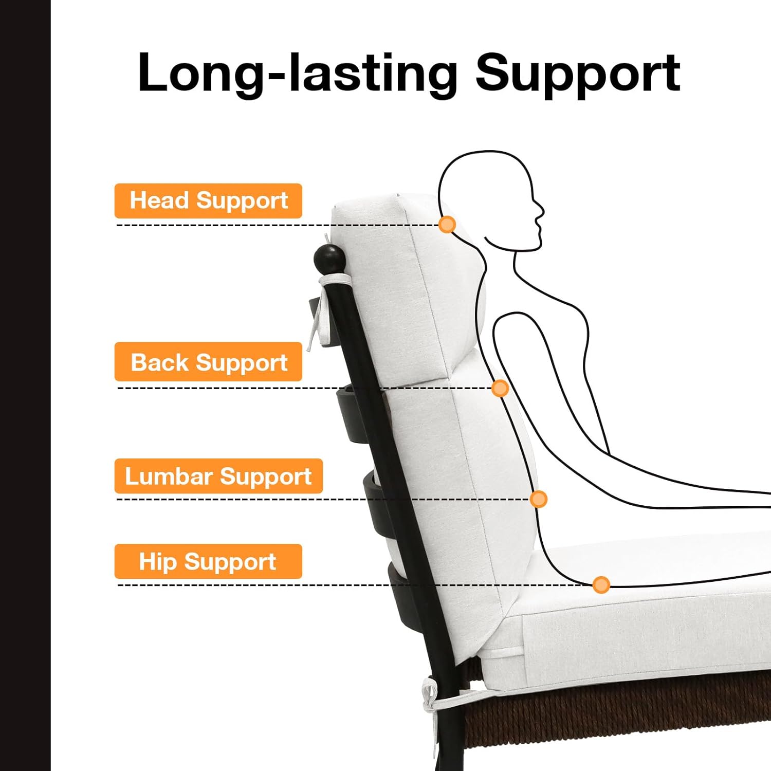 Outdoor High Back Chair Cushion Seat Pads, 44 x 21 Inch Water-Repellent & Fade-Resistant Patio Furniture Cushions with Ties for Adirondack, Rocking Chairs, Linen