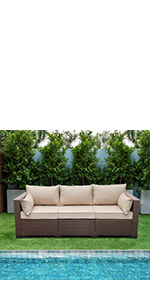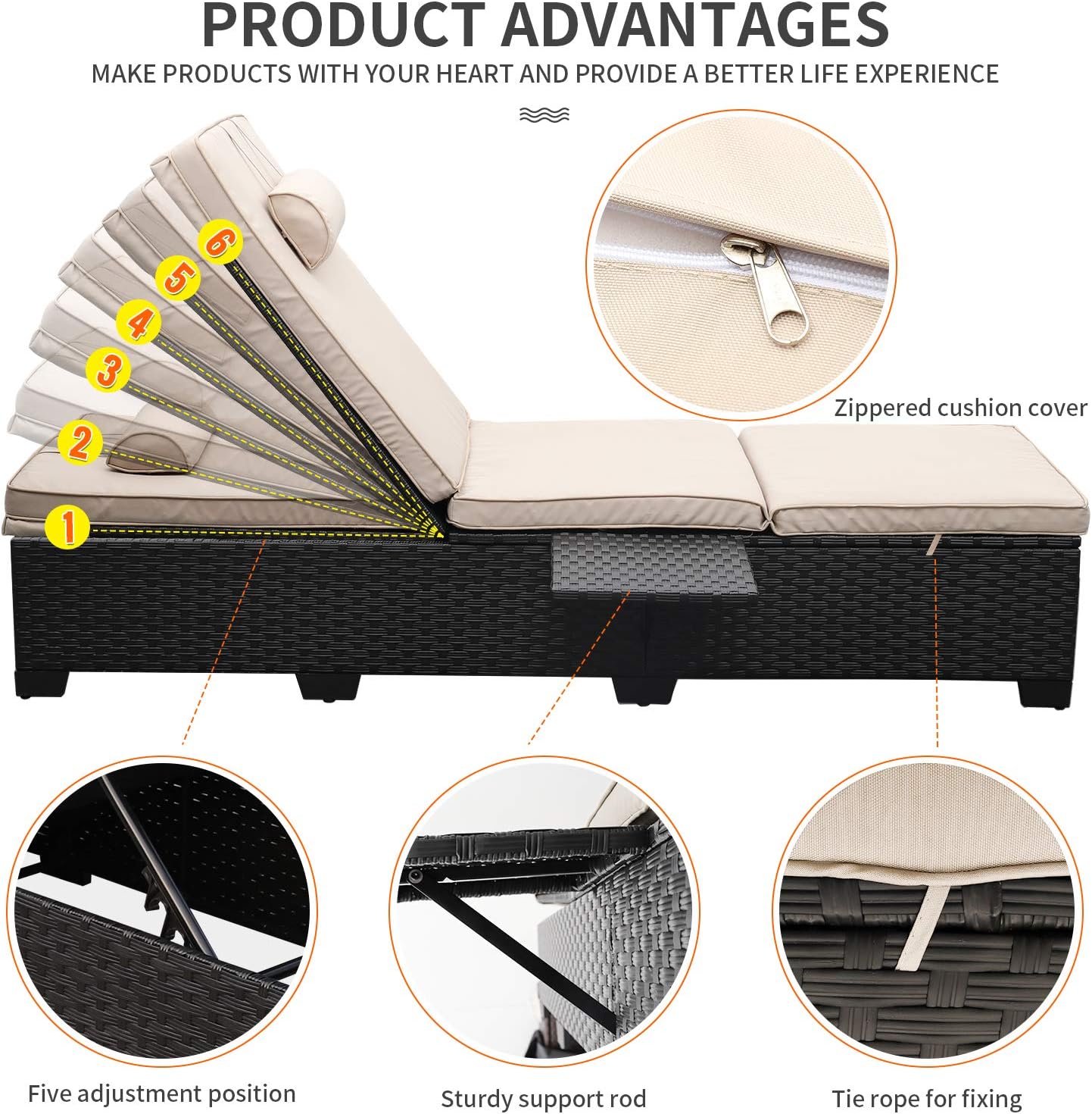 WAROOM Outdoor Chaise Lounge Chairs for Outside Patio Furniture Set of 2 Wicker Recliner Black Rattan Reclining Pool Sunbathing Chair Adjustable Backrest Lounger with Khaki Cushion