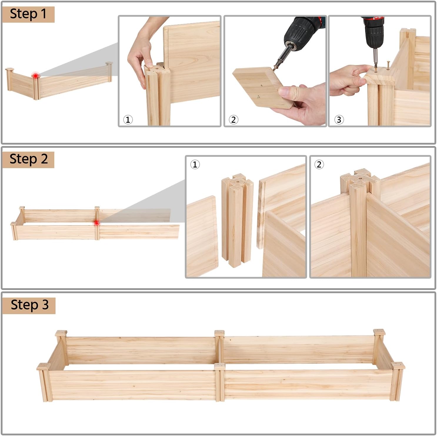 Yaheetech 8×2ft Wooden Horticulture Raised Garden Bed Divisible Elevated Planting Planter Box for Flowers/Vegetables/Herbs in Backyard/Patio Outdoor, Natural Wood, 95 x 25 x 11in